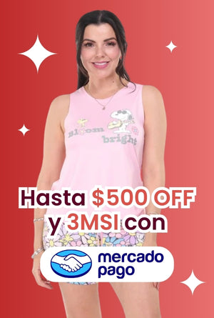 Pijama short de flores y camisa sin manga de snoopy rosa -